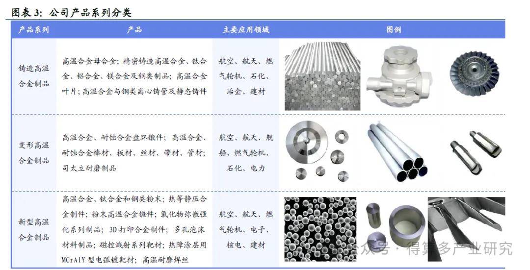 產(chǎn)品定位是“各種高溫合金、耐蝕合金、鋁、鎂、鈦精密鑄造產(chǎn)品,變形高溫合金、粉末高溫合金、金屬間化合物等新型高溫材料產(chǎn)品,并逐步形成板、管、絲、帶等特種鎳基變形合金材料及制品的生產(chǎn)基地,產(chǎn)品逐步實(shí)現(xiàn)由材料、毛坯向零部件延伸”。公司戰(zhàn)略目標(biāo)為:1)建設(shè)高溫合金材料單項(xiàng)冠軍。2)成為國際航空、航天、石化市場鋁、鎂、鈦、高溫合金鑄造產(chǎn)品的龍頭企業(yè),保持并提升國內(nèi)航空、航天、燃機(jī)用變形高溫合金、粉末高溫合金、金屬間化合物等新型高溫合金盤鍛件產(chǎn)品的龍頭和技術(shù)領(lǐng)先地位。3)逐步成為國內(nèi)3D 打印高溫合金粉末材料、特種鎳基板、管、絲、帶材料及制品的產(chǎn)業(yè)基地。